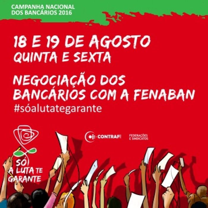Além da Fenaban, também já estão agendadas as primeiras negociações com a Caixa, nesta quarta-feira (17), em Brasília, e com o Banco do Brasil, também em Brasília, no dia 23 de agosto.