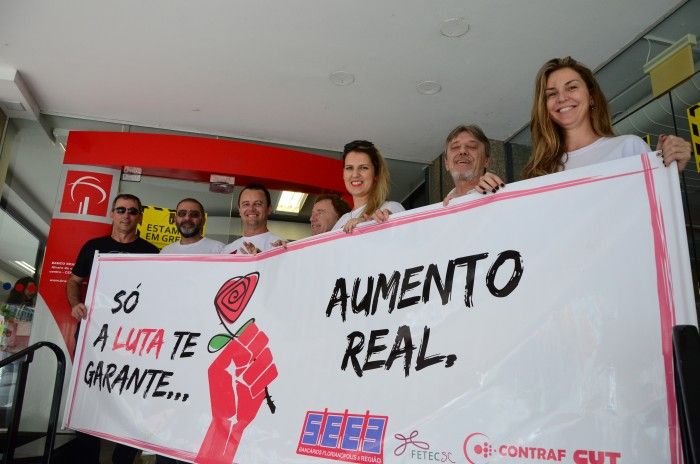 A semana começou com uma adesão ainda mais forte dos bancários à greve em Florianópolis e Região. Na última sexta-feira eram 96 agências na base do sindicato. Já nesta segunda, dia 12, são 104 agências. Na avaliação do SEEB Floripa o movimento está numa crescente e tende a contar com mais adesões esta semana.