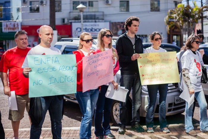 Em um ato público, na manhã desta quinta-feira (15), no centro de Chapecó, os bancários apresentaram a pauta de reivindicações da categoria para a sociedade e manifestaram contra a postura da Federação Nacional dos Bancos (Fenaban) no processo de negociação.