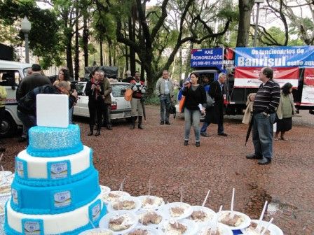 A comemoração ocorreu no fim da tarde e reuniu dirigentes sindicais, Comando dos Banrisulenses e trabalhadores do Banrisul. Houve distribuição de bolo ao público que participou da atividade e manifestações de sindicalistas. Os funcionários da Agência Central e da Direção Geral foram convidados para o ato e para as demais mobilizações da Campanha 2014.