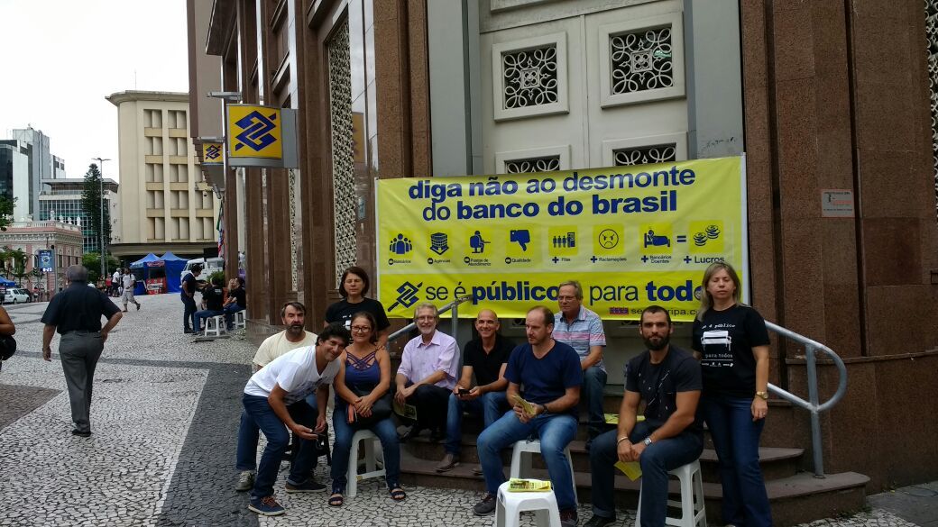 Na última quinta-feira, 02 de março, os, bancários do Banco do Brasil em Florianópolis fizeram paralisação e atrasaram a abertura da agência Nereu Ramos no centro da capital. O protesto foi promovido pelo SEEB Floripa e Detecção SC contra a reestruturação que está sendo implementada pelo banco. Sempre presente nas lutas, o Sindicato dos Bancários de Araranguá e Região participaram do ato na capital catarinense.