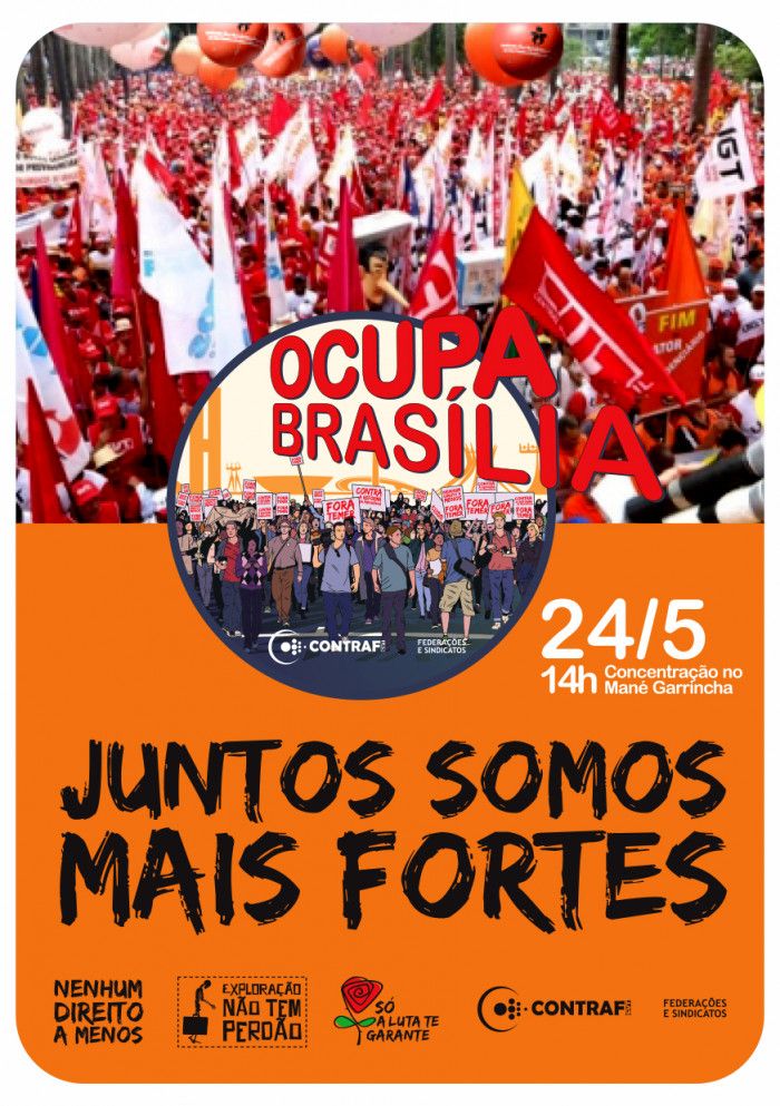 Representantes das centrais sindicais de todo o Brasil participam, nesta quarta-feira (24), do movimento Ocupa Brasília. A expectativa é de que mais de 100 mil pessoas participem da marcha contra às reformas propostas pelo governo Temer e a favor de eleições diretas.