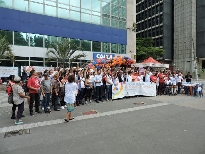 No dia em a Caixa Econômica Federal completou 157 anos de existência, empregados, movimentos sociais, centrais sindicais, sindicatos dos bancários e entidades de representação dos trabalhadores realizaram protestos em frente a agências e departamentos da Caixa em todo país em defesa da manutenção do banco como empresa 100% estatal.