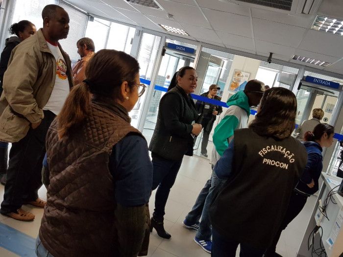 A Caixa do centro de Criciúma teve um Auto de Infração emitido pelo Programa de Defesa do Consumidor (Procon) nesta terça (10) pela manhã. Entre as irregularidades encontradas a agência estava fazendo a triagem dos clientes e usuários inibindo a livre escolha para o seu atendimento e, disponibilizava uma placa informando que valores até R$ 3 mil deveriam ser quitados somente nos caixas eletrônicos e não direto no caixa. Conforme o diretor do Procon, Gustavo Colle, o banco terá 10 dias corridos para apresentar uma reposta e ou defesa desta ação ao órgão com risco de ser multado de 3UFIRS a 3 milhões de UFIRS.