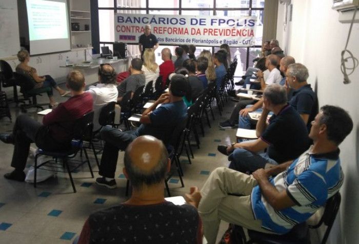 A direção do Sindicato dos bancários de Florianópolis e Região alerta a categoria para participar dos debates e defender seus direitos, pois da forma como esta proposta de Reforma da Previdência vem sendo construída atenderá aos interesses dos banqueiros não dos bancários!