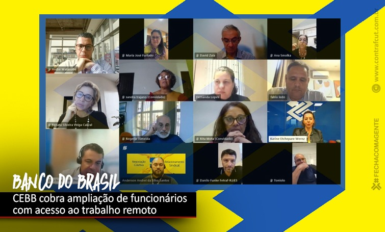 “Nesta reunião, o banco acolheu as nossas pautas, que é aumentar o público que pode acessar o teletrabalho e as áreas habilitadas, com estrutura para que o funcionário possa fazer realizar suas atividades de casa. O BB também se comprometeu a, nos próximos dias, marcar uma nova data para apresentar avanços nesse sentido”, explica Fernanda Lopes, representante da Confederação Nacional dos Trabalhadores do Ramo Financeiro (Contraf-CUT) na CEBB.