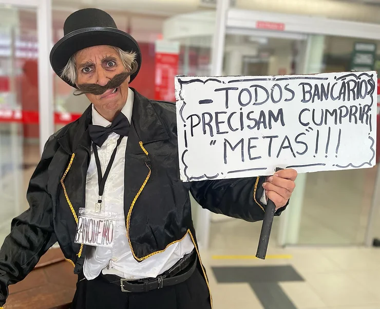 Sintrafi Floripa realiza ação teatral para debater adoecimento mental dos bancários e bancárias