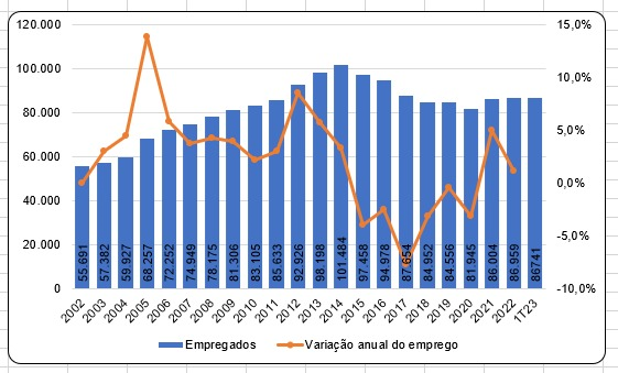 Em 2014, quando o concurso foi realizado, a Caixa contava com 101.484 empregados. Considerando os números do balanço do primeiro trimestre de 2023, são 14.743 postos de trabalho a menos.