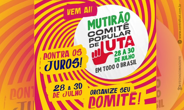Os Comitês Populares de Luta realizam, nos dias anteriores à próxima reunião do Comitê de Política Monetária (Copom), o Mutirão Contra os Juros, para pressionar o presidente do Banco Central (BC), Roberto Campos Neto, a baixar a taxa básica de juros Selic, hoje em 13,75% ao ano. O Copom se reúne nos próximos dias 1º e 2 de agosto.
