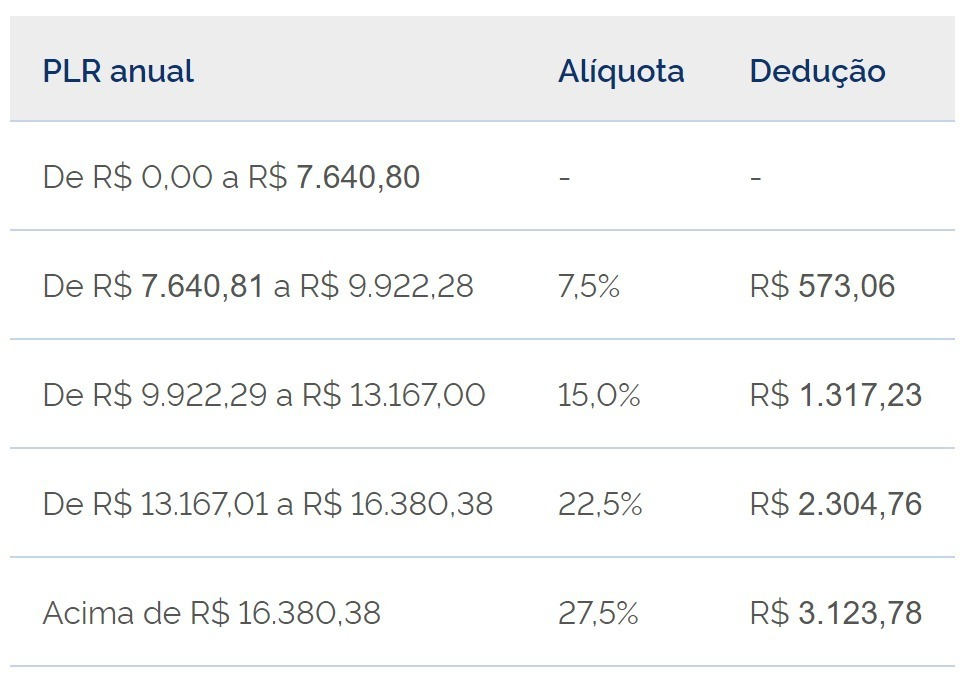 “A primeira informação importante é que os valores de IR são descontados diretamente na fonte, assim como acontece com os rendimentos salariais. Quem recebeu PLR acima de R$ 7.640,80, nesta parcela paga agora pelos bancos, já terá desconto de IR, de acordo com a tabela de tributação exclusiva da PLR”, disse o economista do Departamento Intersindical de Estatística e Estudos Socioeconômicos (Dieese), Gustavo Cavarzan.