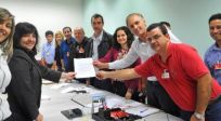 Nesta terça-feira (23), em reunião realizada na sede do banco, na Cidade de Deus, foi entregue a minuta da pauta de reivindicações específicas dos funcionários do banco. Essa pauta foi definida pela COE do Bradesco no Encontro Nacional dos Funcionários de Bancos Privados, organizado pela Contraf-CUT, entre os dias 26 e 27 de maio, em São Paulo. Participaram da reunião o coordenador da Comissão de Organização dos Empregados do Bradesco (COE), Gheorge Vitti e a presidente do Sindicato dos Bancários de São Paulo, Juvandia Moreira. O documento foi entregue para a diretora de Recursos Humanos do banco, Glaucimar Peticov.