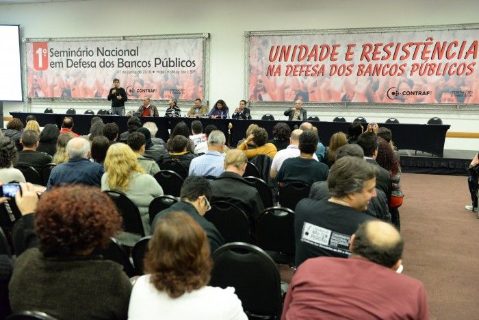 Fernando Nogueira esclareceu que as ações e investimento em relação aos bancos públicos dependem de uma decisão política. Sendo necessária a atuação e cobrança da sociedade. “O valor patrimonial dos bancos públicos, das empresas públicas, é muito maior do que o que o mercado vem apresentando e que mesmo que a decisão do governo que ocupa interinamente a Presidência seja a de privatizar o patrimônio público, a questão não resolveria o problema econômico. O risco é os bancos públicos morrerem de inanição e pela inação de um governo contra a nação”, finalizou Nogueira